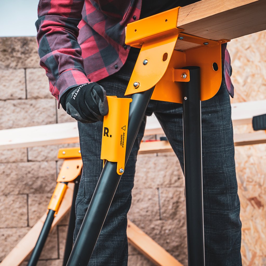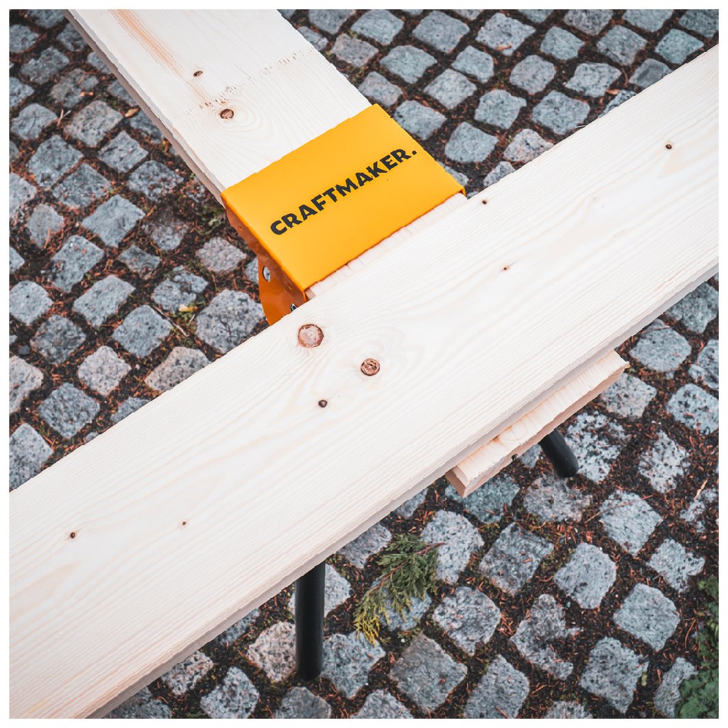 CRAFTMAKER Cut Maker W40 je robustno jekleno stojalo za žaganje, ustvarjeno za več kot zgolj razrez lesa – vse v prepoznavni črno-rumeni podobi znamke CRAFTMAKER. Prilagodite ga lahko z lastno podporno desko ali nastavite razdaljo med jeklenimi čeljustmi, ki jih zaradi privijačenega sistema enostavno premikate. Izskočne rumene nosilce za material lahko po potrebi hitro pripravite za uporabo. Odstranite jeklene čeljusti z lesene osnove in W40 spremenite v začasno delovno mizo ali podporno stojalo katerekoli dolžine. Postavitev in zlaganje sta hitra in enostavna. Stabilno stojalo za rezanje, primerno tako za profesionalce kot za domače mojstre.
