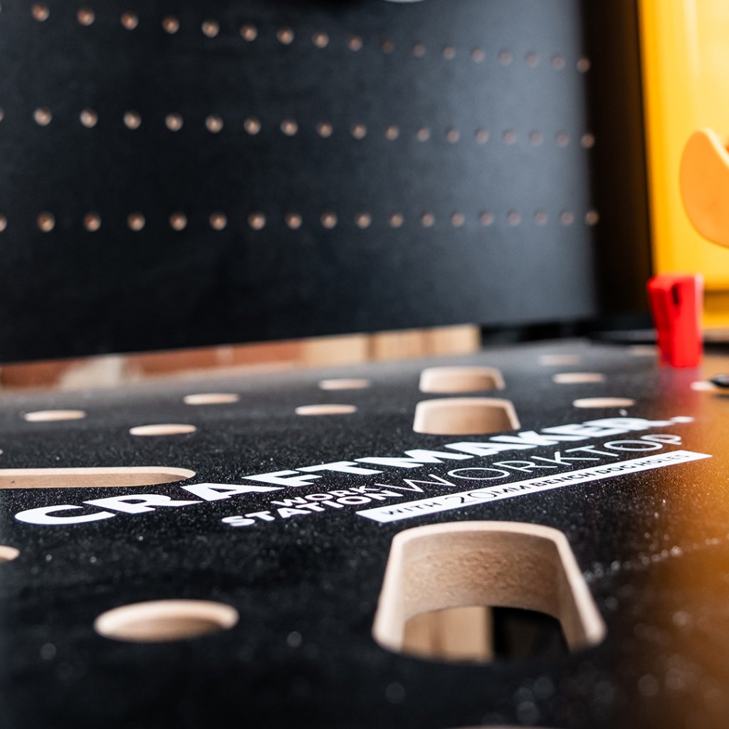 CRAFTMAKER Delovna Postaja T800 na novo opredeljuje učinkovitost delavnice, saj ponuja robusten in inteligentno zasnovan delovni prostor, ki deluje tako neutrudno kot vi. Zasnovana za zahtevne naloge, ta miza vključuje premišljene funkcije za povečanje produktivnosti in vzdrževanje organiziranega okolja. Pod trpežno delovno ploščo iz MDF, zaščiteno z odpornim črnim laminatom in opremljeno z natisnjeno merilno lestvico, priročna jeklena polica omogoča takojšen dostop do orodja in materialov. Integrirana zadnja stena z luknjami (pegboard) ohranja vaše bistvene orodje urejeno shranjeno in takoj dostopno, kar zagotavlja urejen in čist delovni prostor. Ta vsestranska miza je popolna za širok spekter aplikacij, od natančnega rezanja in lepljenja do sestavljanja pohištva, piljenja ali celo uporabe kotne brusilke. Njena trdna konstrukcija omogoča tudi enostavno namestitev delavniškega primeža. Ključna prednost je inovativen sistem zamenljive delovne plošče, ki ponuja tako trdno površino kot tudi perforirano možnost za zatiče in primeže, kar vam omogoča, da prilagodite svojo postavitev za vsak projekt.