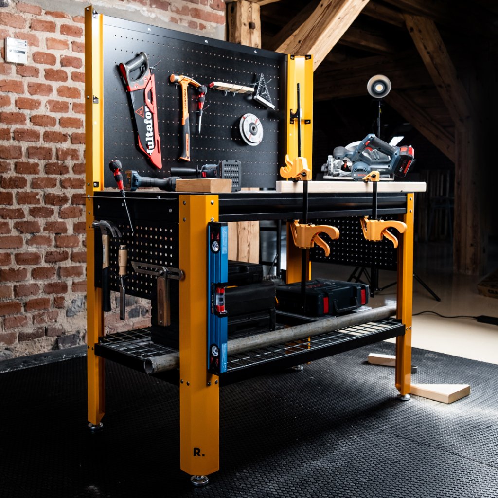 ✅ Integrirana zadnja stena z luknjami (pegboard) za učinkovito organizacijo orodja