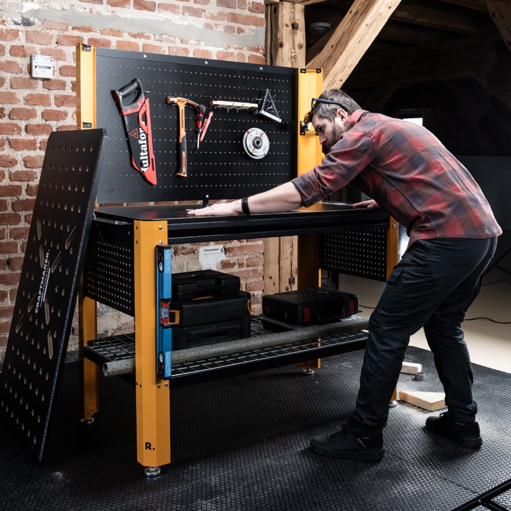 CRAFTMAKER Delovna Postaja T800 je robustna delavna miza, zasnovana za vrhunsko zmogljivost in organizacijo. Njen robusten okvir, nastavljiva višina in integrirano shranjevanje orodja zagotavljajo izjemno učinkovit in prilagodljiv delovni prostor za vsako zahtevno nalogo.