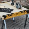Mizarska stolica H200 ni koščena koza, saj lahko na par stolic naložite do 1000 kg materiala. Snemljivi teleskopski nosilci zlahka sprejmejo letve 2x4 (3,8 x 9 cm) in ustvarijo zanesljivo mizo za delovišča, uporabljajo pa se lahko tudi kot opora za rezanje. Preklopne nosilce za pritrjevanje materiala/obdelovanca na nogah stolice je mogoče uporabiti med rezanjem plošč, pri čemer je največja dovoljena obtežitev 120 kg (ob uporabi para stolic).